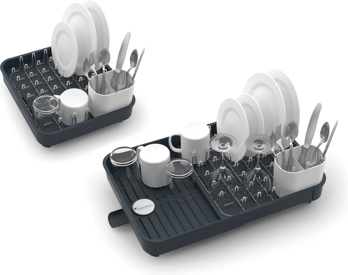 Met het Extend Afdruiprek van Joseph Joseph is afwassen een fluitje van een cent. Het rek is voorzien van een opening om het overtollige water af te voeren en een verplaatsbare bestekbak. Je kunt hem uitschuiven waardoor hij bruikbaar is voor een eenpersoonshuishouden als voor een gezin. Een musthave voor iedere keuken.