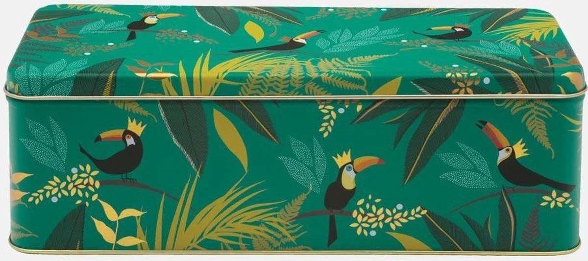 Het bewaarblik is prachtig afgewerkt met gouden details.