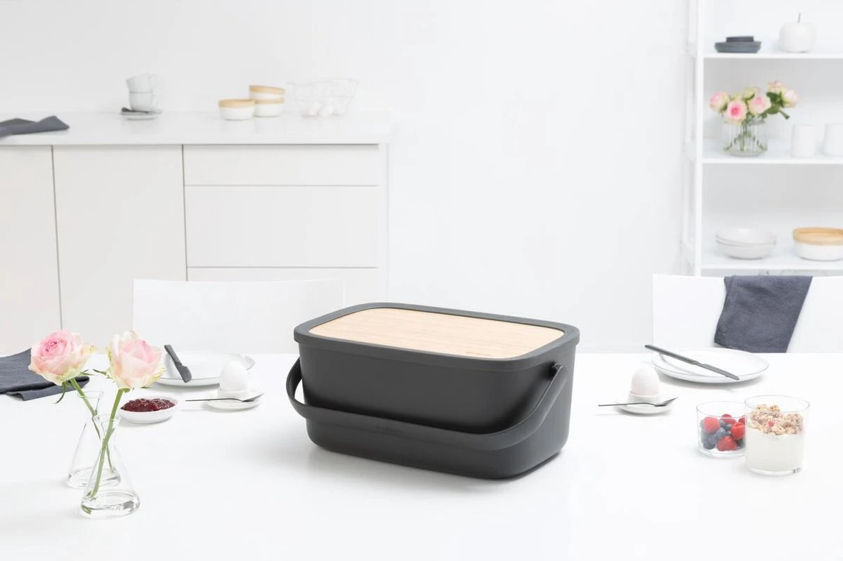 Brabantia Nic Broodtrommel – met Bamboe deksel – Dark Grey