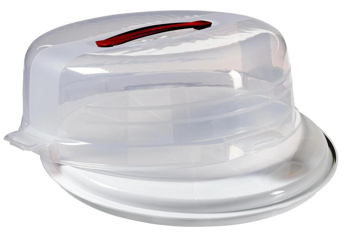 De Curver Taartdoos maakt onderdeel uit van de Chef@Home-assortiment. Door zijn transparante deksel is de inhoud van deze taartdoos altijd zichtbaar. Mede door zijn rubberen handgreep is het comfortabel om de taartdoos op te pakken en zorgvuldig te verplaatsen. Het plateau is tevens een hulp bij het snijden van de taart (12 of 24 stuks).