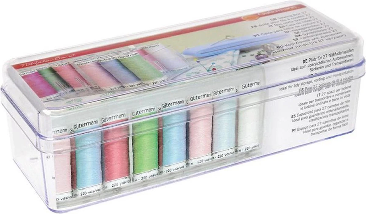 Gütermann naaigarenbox, voor 27 klossen, transparant , lege opbergdoos, gemaakt van kunststof