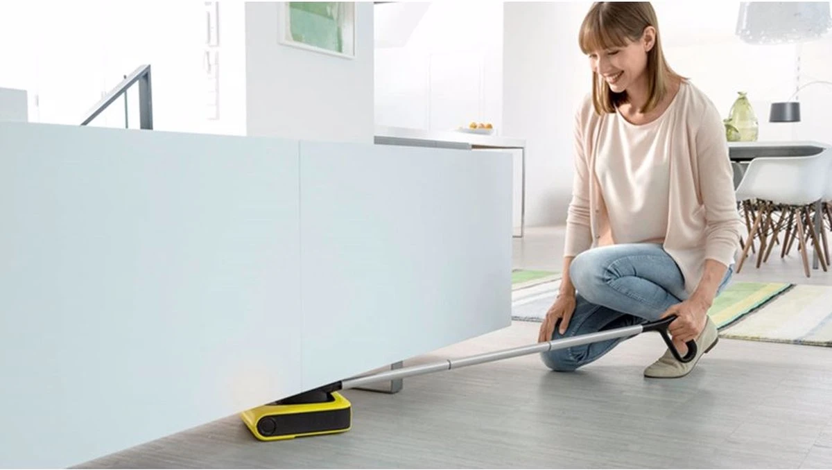 Harde vloeren en tapijten snel en grondig tussentijds reinigen? De perfecte klus voor de KB 5 Yellow draadloze accu-rolveger. Dankzij het Kärcher Adaptive Cleaning System levert de draadloze elektrobezem een uitstekend reinigingsresultaat waarbij vuil eenvoudig en volledig wordt verwijderd. De KB 5 met lithium-ion accu is sneller gebruiksklaar dan een stofzuiger en maakt tussentijds reinigen heel eenvoudig. U kunt ergonomisch werken zonder bukken, zeer dicht langs de plinten vegen, traptreden reinigen en zelfs lastige plekken tussen stoelen en onder meubilair bereiken. Andere kenmerken en handige functies van de KB 5 zijn de automatische aan-uitschakelaar, het flexibele dubbele gewricht voor eenvoudig manoeuvreren, het vuilreservoir dat eenvoudig aan de zijkant kan worden uitgenomen, de universele borstel, ruimtebesparend opbergen en het lage gewicht van de draadloze accu-rolveger.
