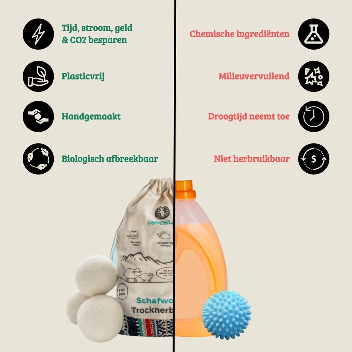 Bespaar tot 40% energie en tijd met de XXL herbruikbare drogerballen van Chinchilla®