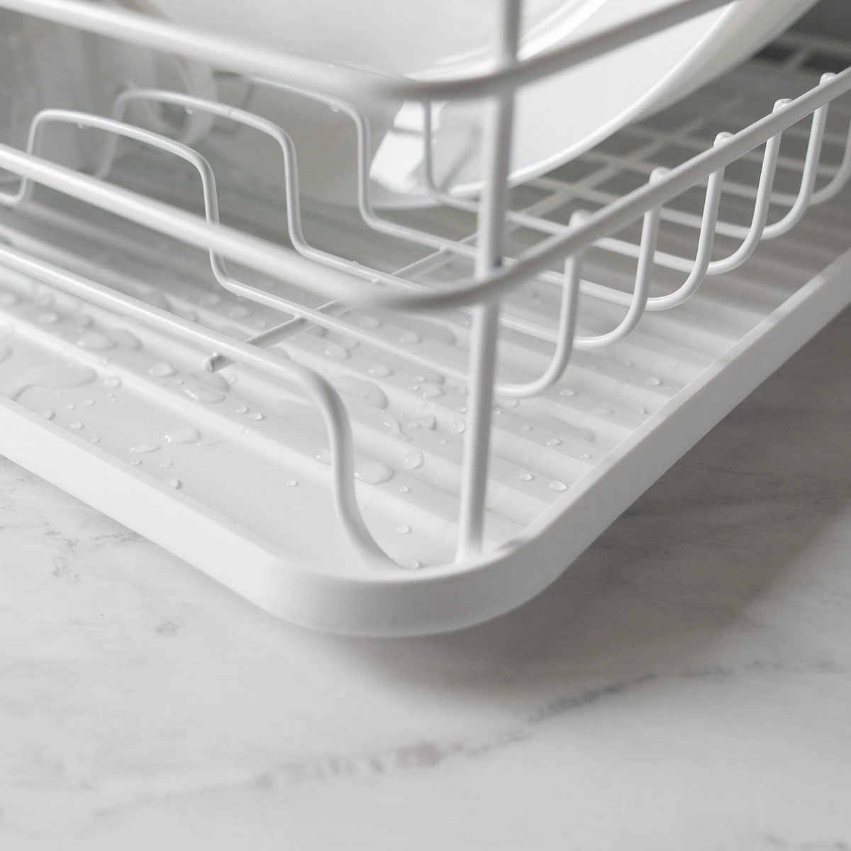 - Afdrogen wordt een feestje. Plaats de natte afwas in het rek en wacht geduldig af tot het vanzelf droogt. Het afdruiprek heeft een losse lekbak waar al het vocht in druipt.