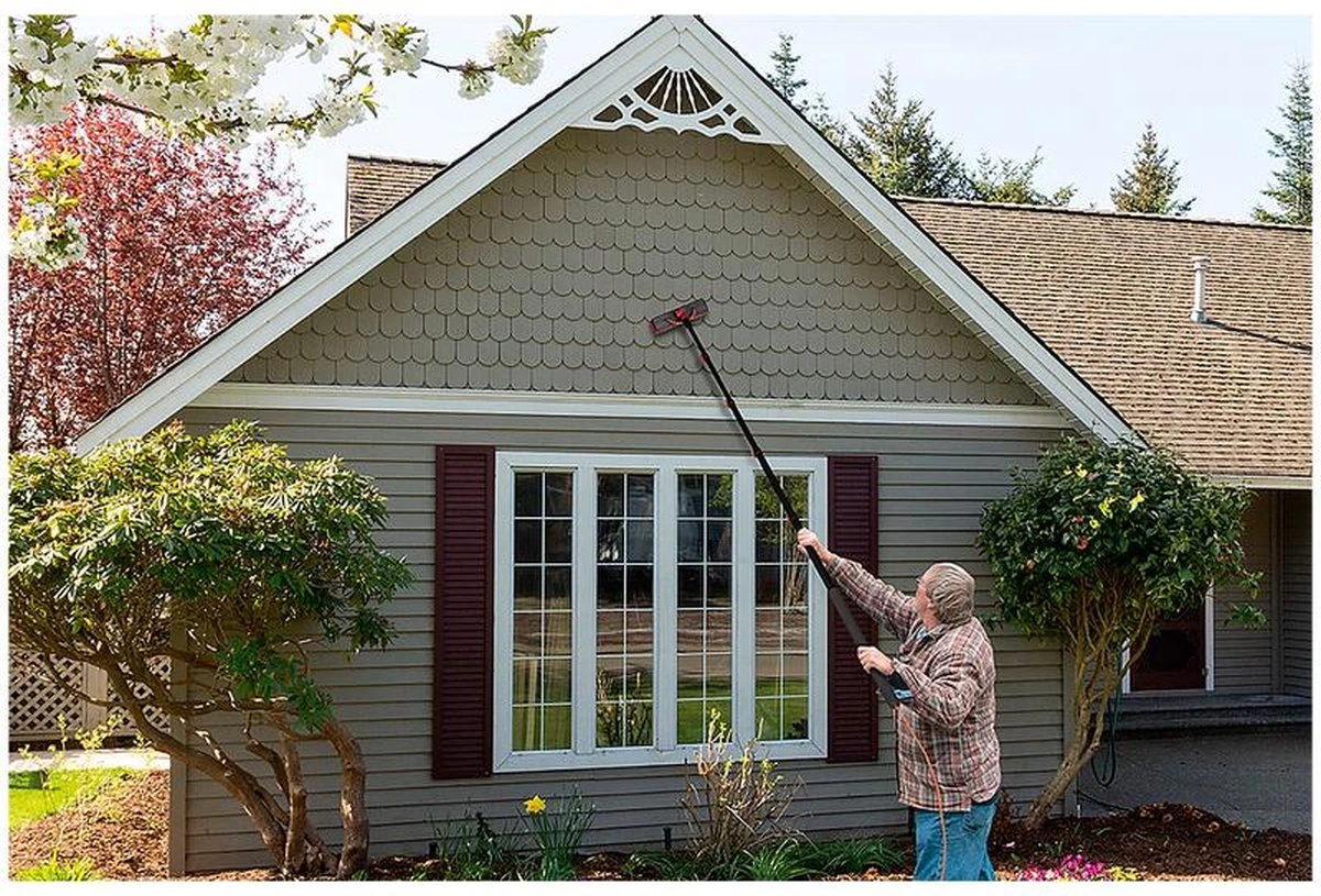 De uitschuifbare telescoopsteel met verstelbare borstel is handig voor bijvoorbeeld het reinigen van je zonnepanelen, overkapping, de gevel of je ramen. Geen enkel probleem voor deze telescoopsteel met borstel. Door de lengte van 4,6 meter en kantelbare borstel kan je op elke plek makkelijk bij. Sluit hem gemakkelijk aan op je tuinslang en maak alle plekken die voorheen onmogelijk te bereiken waren nu goed schoon.