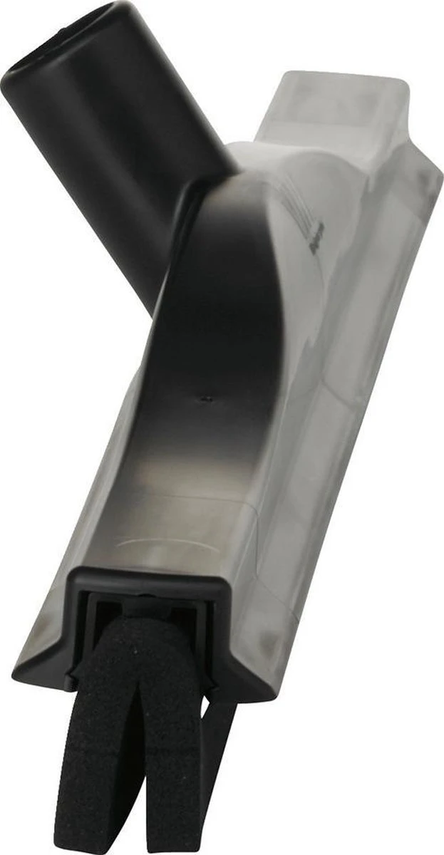 Klassieke Vikan Vloertrekker vervaardigd uit polypropyleen met vervangbaar rubber. Het TPE rubber is zwart en bevestigd in een vervangbare cassette. De opstaande spatranden zorgen ervoor dat water niet spettert op het gedroogde oppervlak.