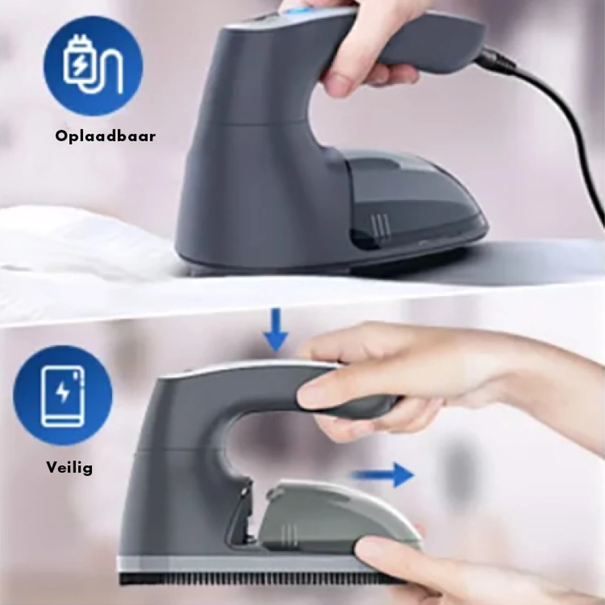 Als het blauw lampje knippert, sluit je de pluizenverwijderaar gemakkelijk aan met de usb-kabel op een USB-adapter, laptop of powerbank. Ook tijdens het opladen is de ontpluizer te gebruiken.