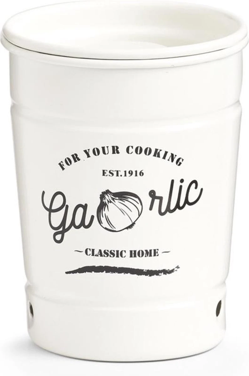 - 1x Knoflook voorraad/bewaar emmertje/blikje wit 12 cm